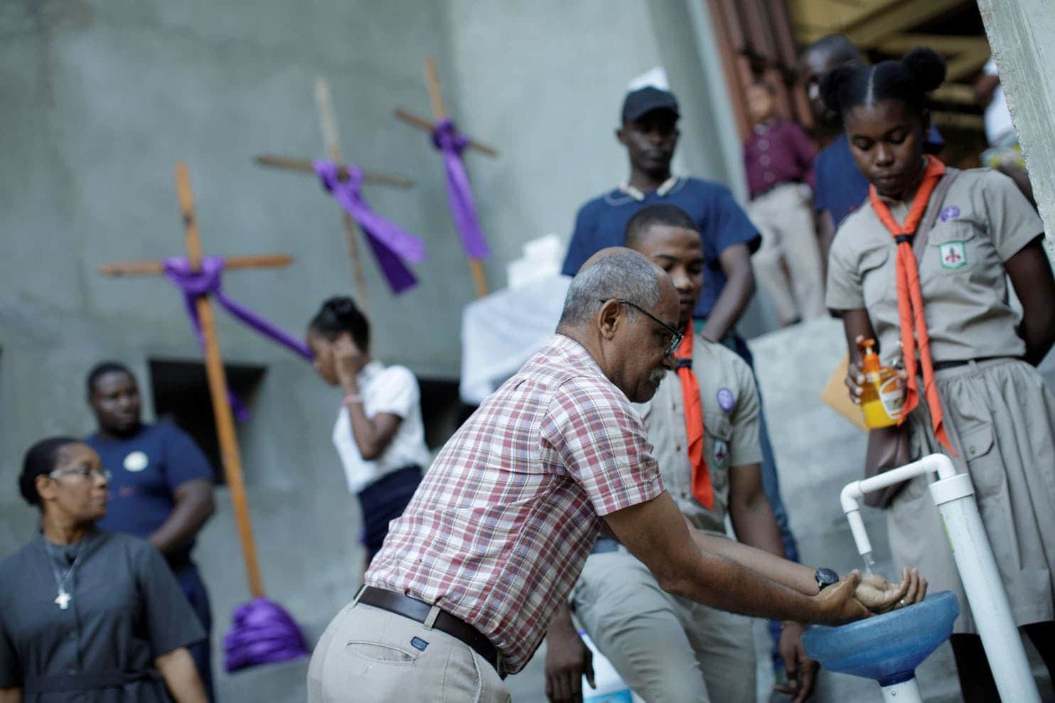 Scouts in Haiti spread message about hand-washing. Photo Credit: Repeating Islands