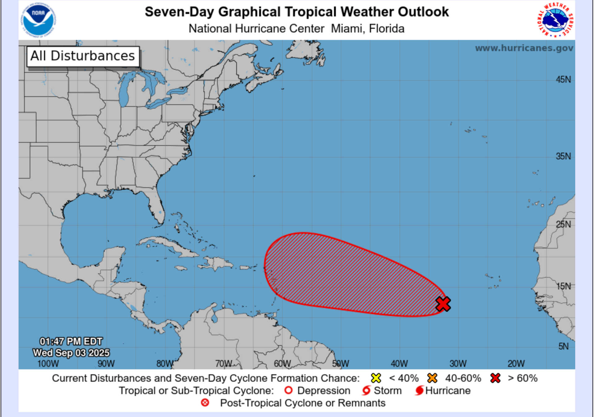 Forecasters are paying close attention to a tropical wave located a few hundred miles west-southwest of the Cabo Verde Islands as the Atlantic hurricane season moves into its peak. While still disorganized, the system shows signs that it could develop into a tropical depression later this week, and its potential track has drawn interest in the Leeward Islands, the U.S. Virgin Islands, and Puerto Rico.