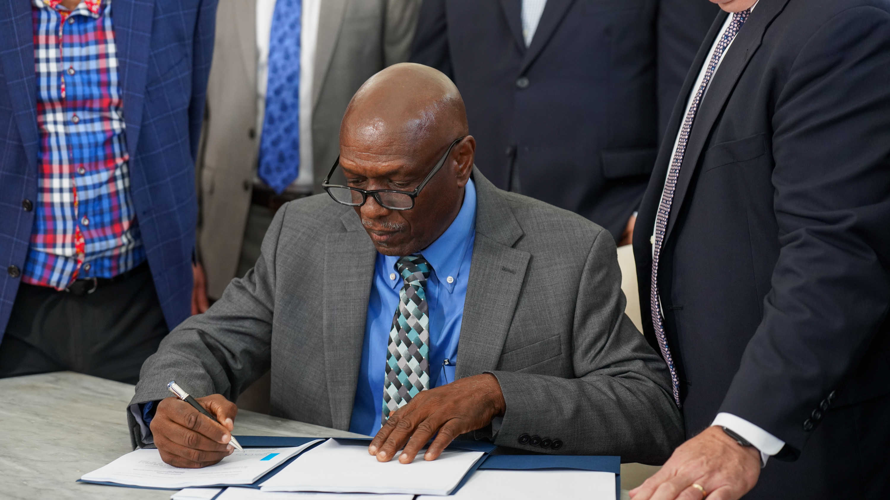 V.I. Port Authority Executive Director Carlton Dowe was one of several signatories, including Governor Albert Bryan, to sign an agreement for the redevelopment of the territory's airports (4.5.24) Photo Credit: MEDIA ONE