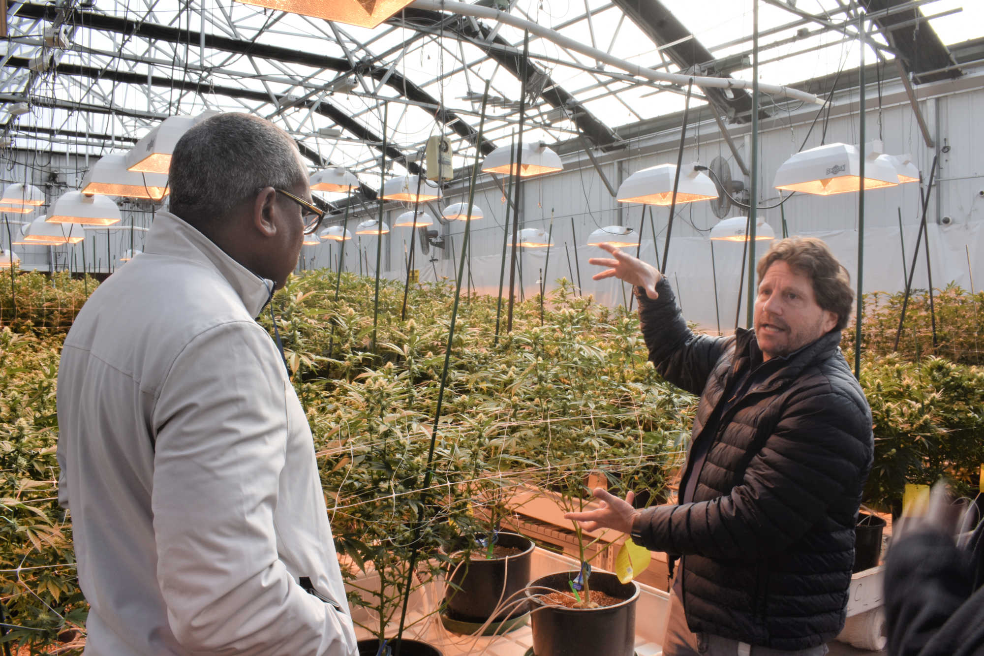 Governor Albert Bryan, left, listens to Telluride head of operations Rick Scicchitano during a tour of the marijuana grow facility on Wed., Oct. 27, 2021. Photo Credit: VI CONSORTIUM