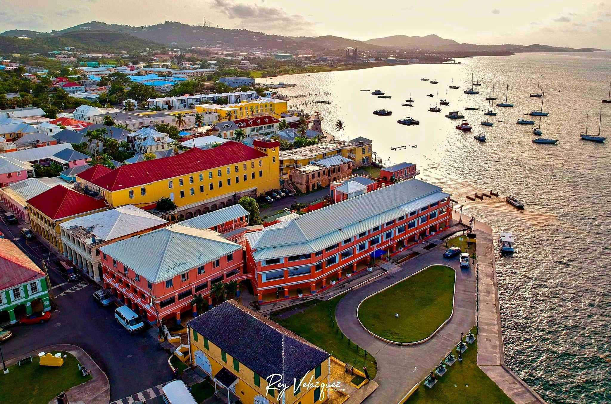 Aerial shot of parts of downtown Christiansted