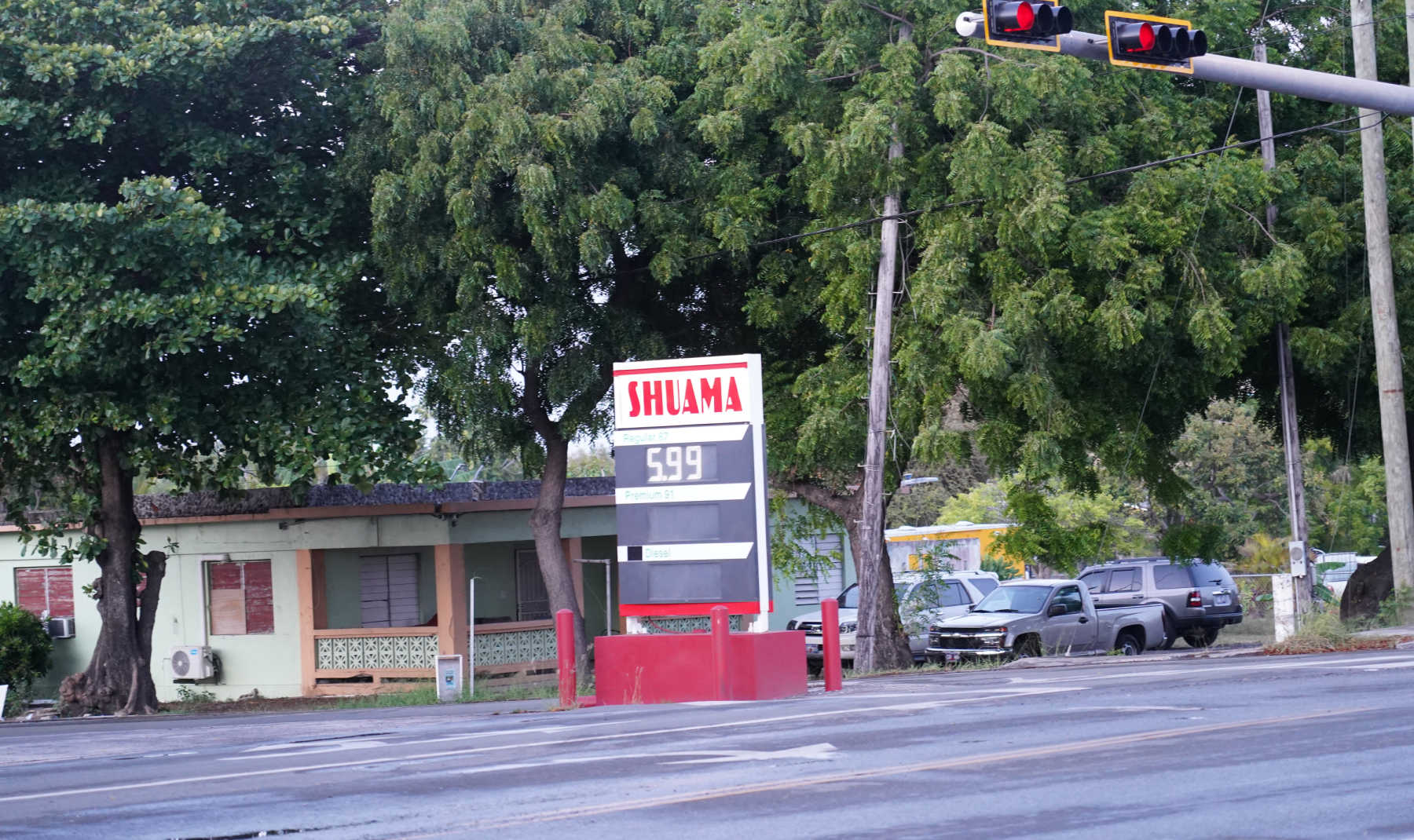 The cost for one gallon of regular unleaded gasoline at Shuama Gas Station in Sunny Isle as of last week. Photo Credit: ERNICE GILBERT/ V.I. CONSORTIUM