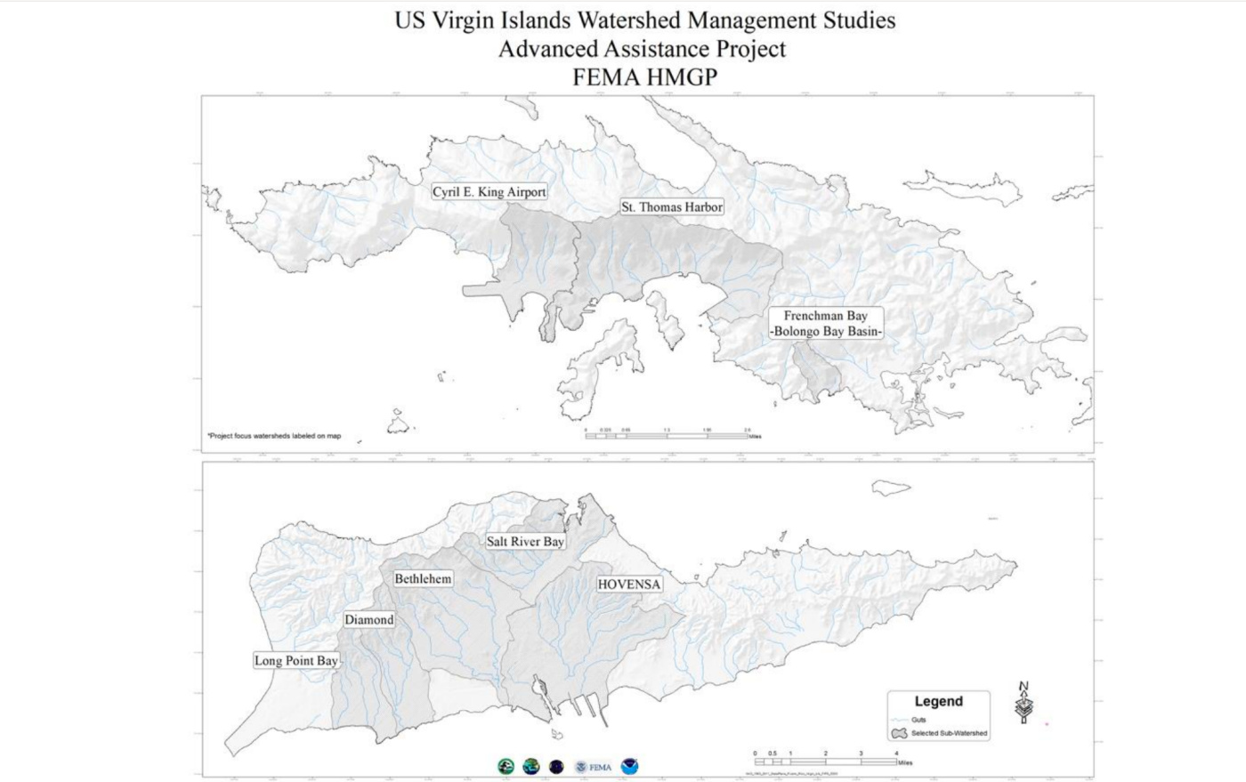 The Watershed Management Plans (WMPs) produced as a result of this project will accompany previous and ongoing Watershed Plans across the Virgin Islands, including Coral Bay and Fish Bay in St John, Smith Bay in St Thomas, and the East End of St Croix. WMPs help identify the root causes of flooding, which often occur somewhere other than the major or visible site of a flooding problem.