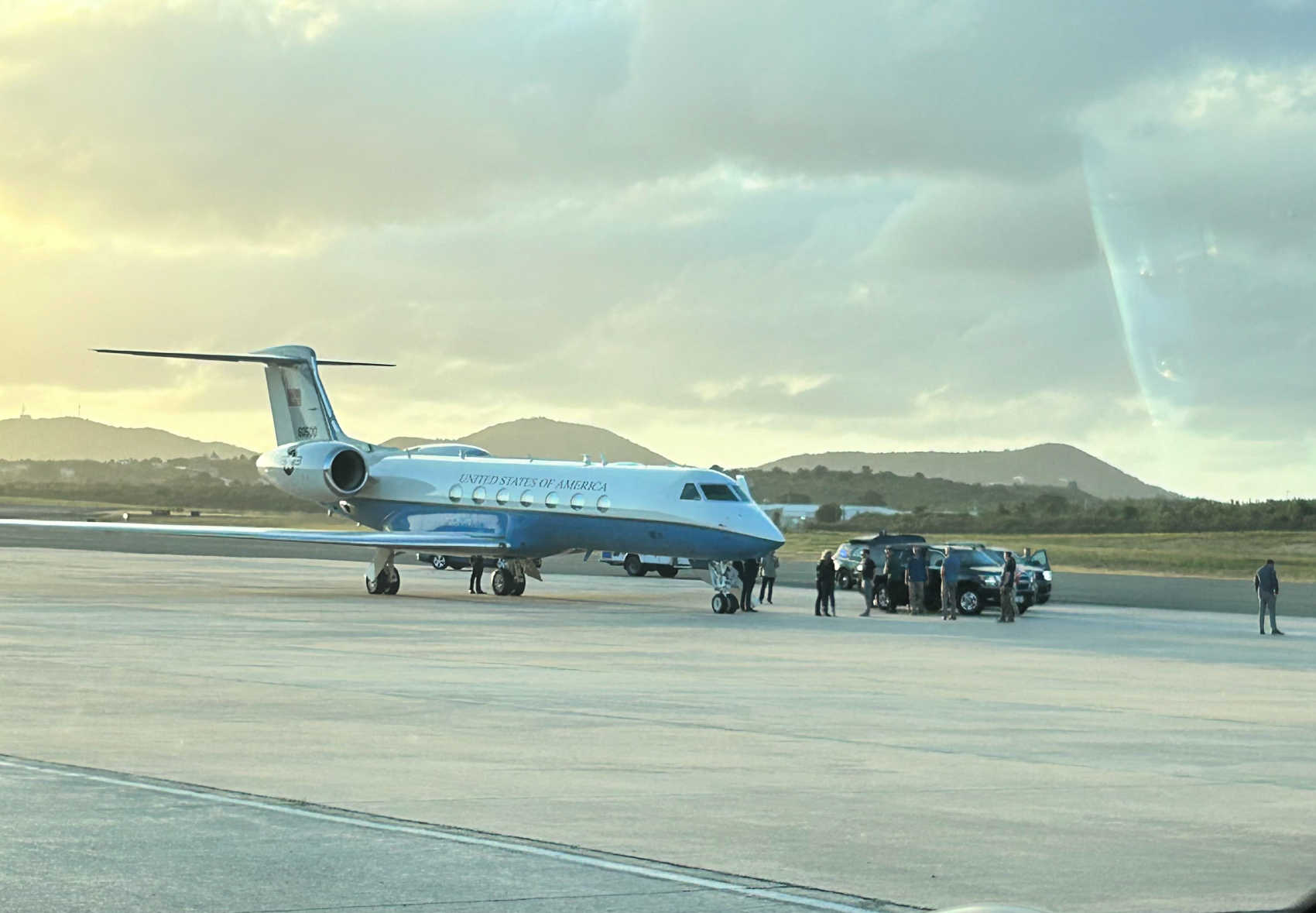 A U.S. government-owned jet awaits First Lady Jill Biden on Friday, March 17, 2023 at the Henry E. Rohlsen Airport on St. Croix. Photo Credit: V.I. CONSORTIUM