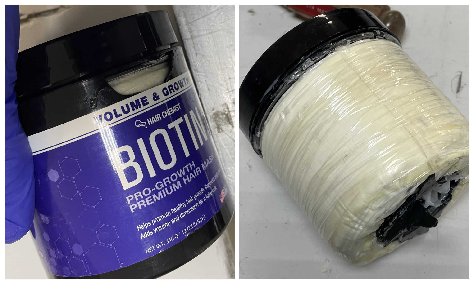 U.S. Customs and Border Protection (CBP) officers successfully intercepted a shipment containing 47.4 pounds (21.5 kilograms) of cocaine concealed inside 51 jars of hair conditioner. The contraband, with an estimated street value of $361,200, was part of a package destined for Thailand.