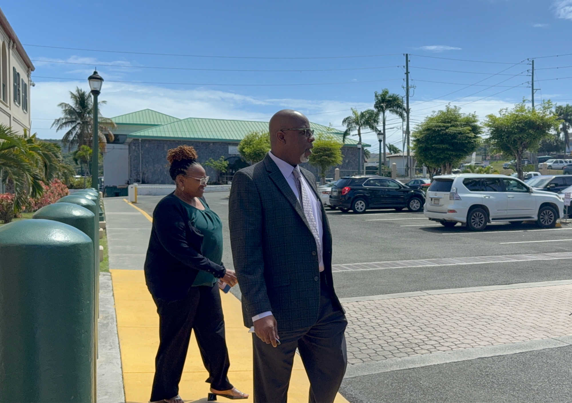 Darin Richardson, center, leaving the District Court in St. Croix on February 20, 2025 during a lunch break. Photo Credit: ERNICE GILBERT, V.I. CONSORTIUM