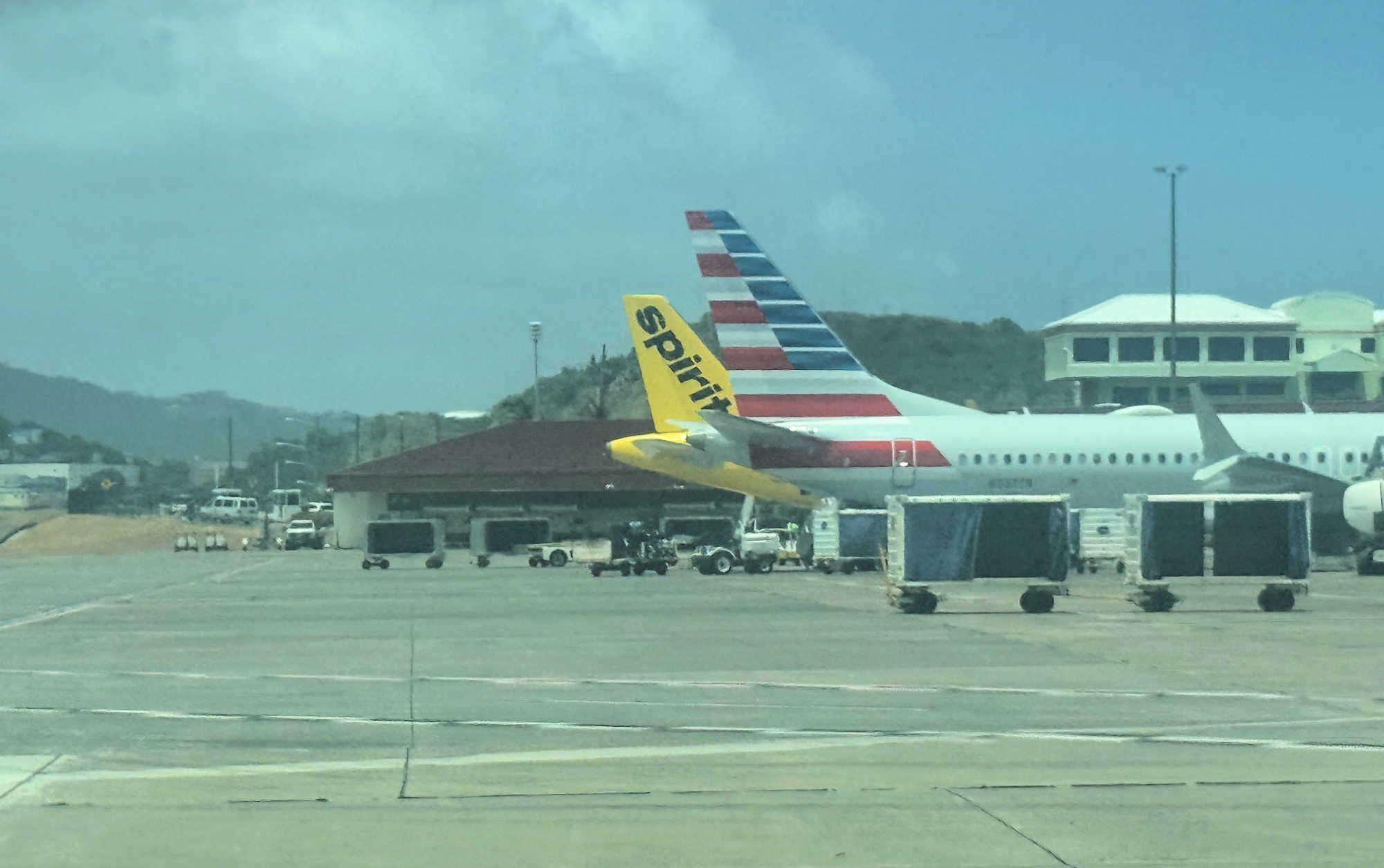 Spirit Airlines and American Airlines at the Cyril E. King Airport on June 29, 2025. Photo Credit: V.I. CONSORTIUM.