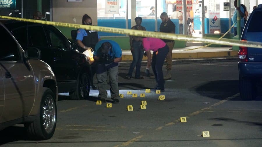 Police investigate shooting outside Dominoes Pizza in Golden Rock Thursday night. Photo Credit: VI CONSORTIUM
