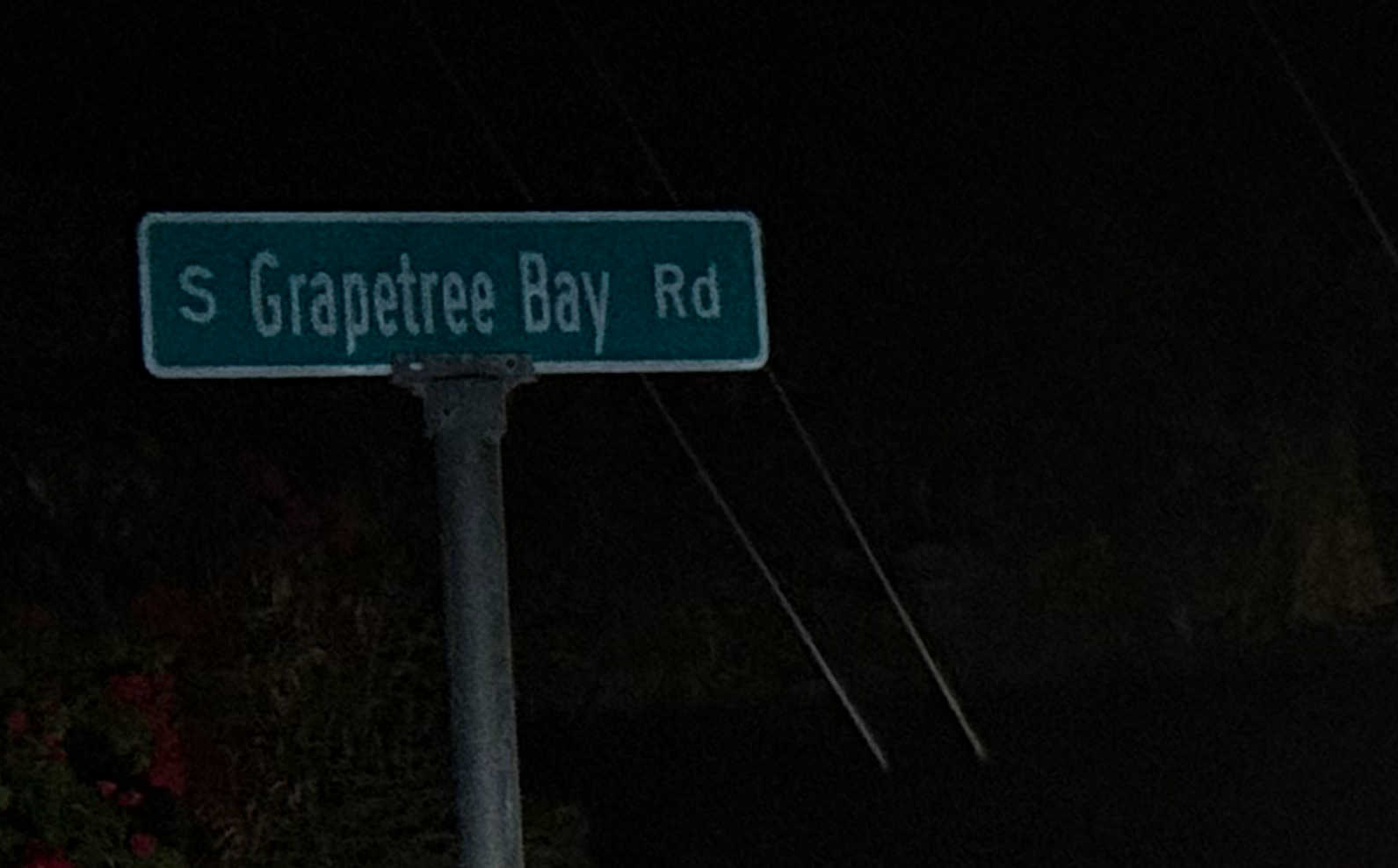 A road sign marks South Grapetree Bay on St. Croix, where police responded Friday evening after a woman was found unresponsive inside a residence. Photo Credit: V.I. CONSORTIUM.