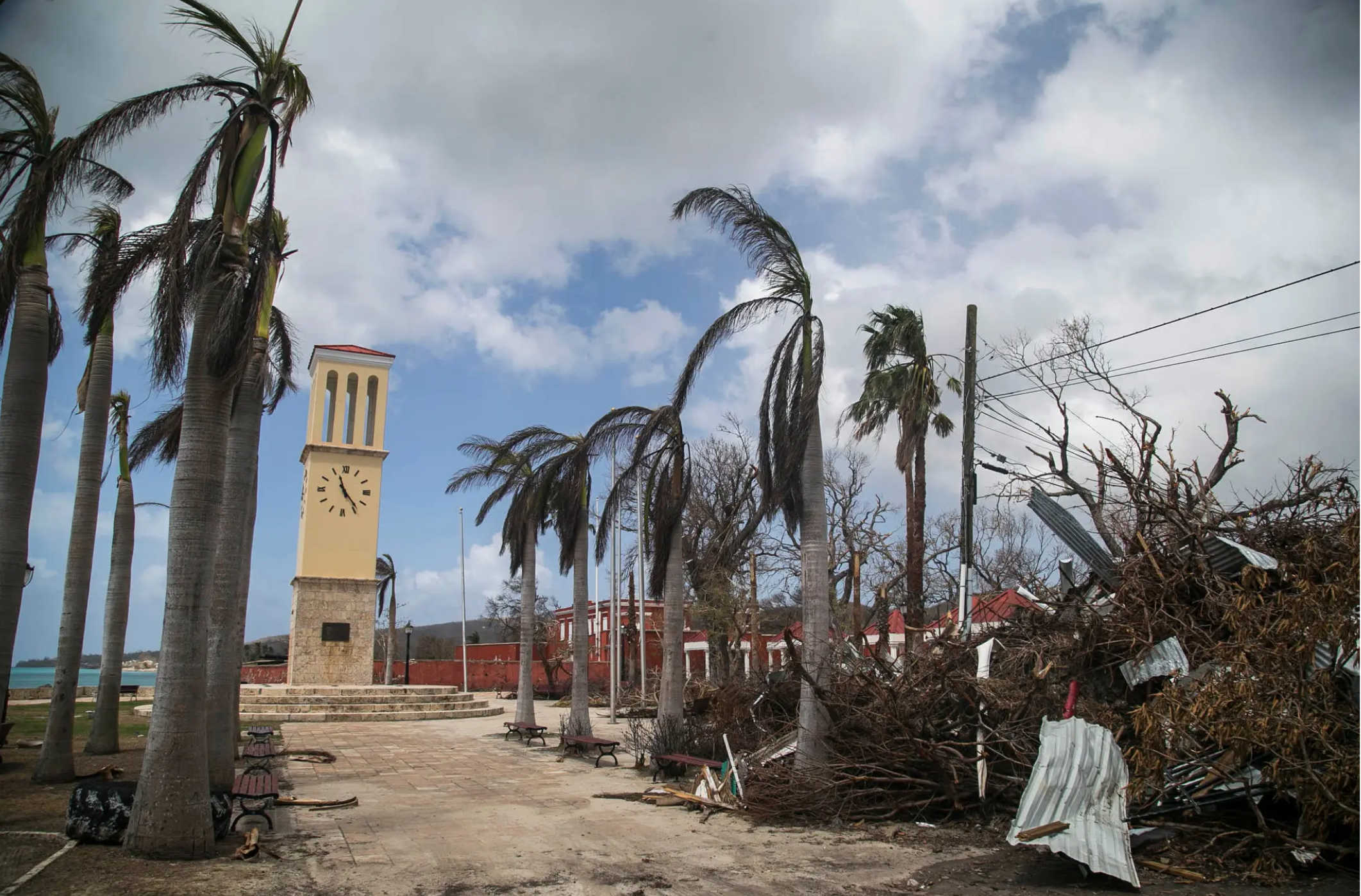 Pathway to the Clocktower in Frederiksted, St. Croix with debris piled on the right side following Hurricane Maria in Sept. 2017. Photo Credit: NEW YORK TIMES