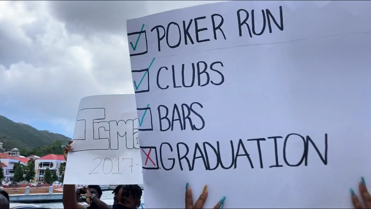 CAHS students on May 13 protested the V.I. Dept. of Education's decision to hold walk-thru graduation ceremonies in the St. Thomas-St. John District. Photo Credit: VI CONSORTIUM