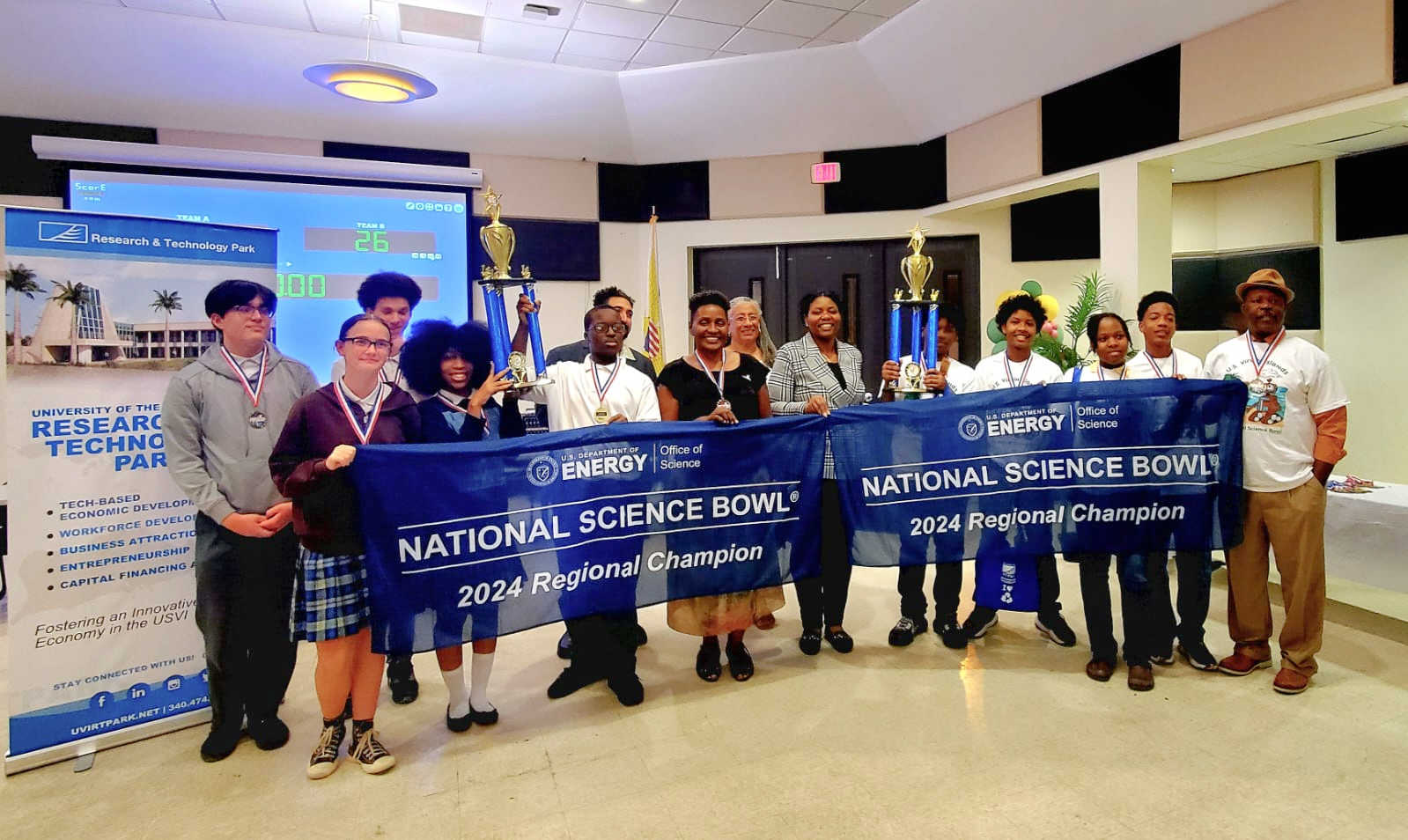 Following all-day competitions on Sunday at the University of the Virgin Islands' Great Hall on St. Croix, two teams emerged as champions of the 2024 Virgin Islands Regional Science Bowl, qualifying them for the national championship in Washington, DC, from April 25-29.