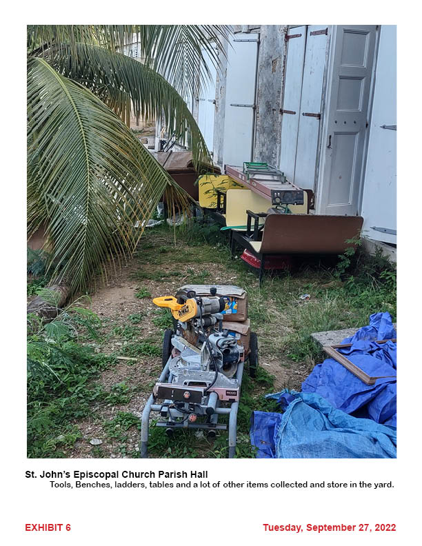 Exhibit 6 (Sept. 27, 2022): Yard with tools, benches, tables, and other items “collected and stored.”