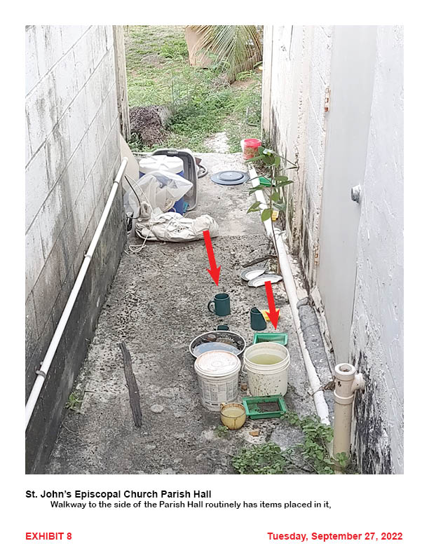 Exhibits from St. John’s Episcopal Church, including photos the church says depict conditions under The Collective Collaboration’s use of its Parish Hall. Photo Credit: ST. JOHN’S EPISCOPAL CHURCH