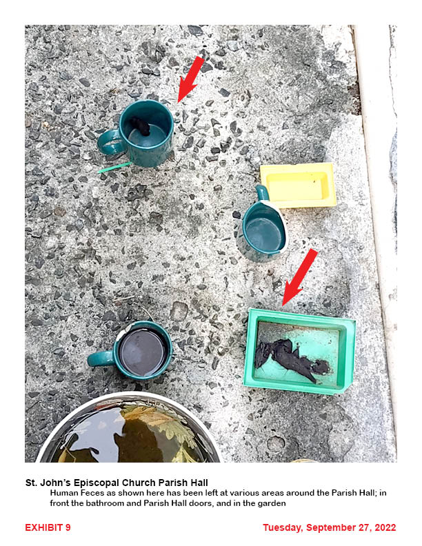 Exhibit 9 (Sept. 27, 2022): Cups and a tray that the church says contained human feces.