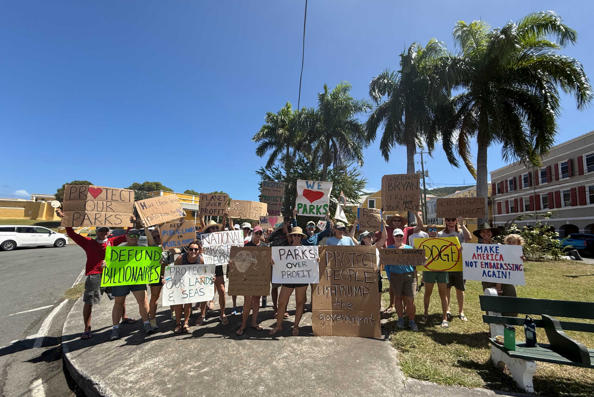 Locally, federally managed park sites will suffer from the reduction in an already-understaffed workforce, the protesters said, warning of a potential uptick in illegal fishing activities in protected areas as one possible consequence. The loss of federal grant funding into the territory is also being anticipated with dread. Continued National Heritage Area funding is reportedly uncertain; the territory stands to lose $2 million annually if it is terminated. “That wouldn't just support tourism, but it also provides jobs, bring new interpretive programs, [and] offer training,” a protester said. “We're gonna be missing out on all that funding,” she lamented.