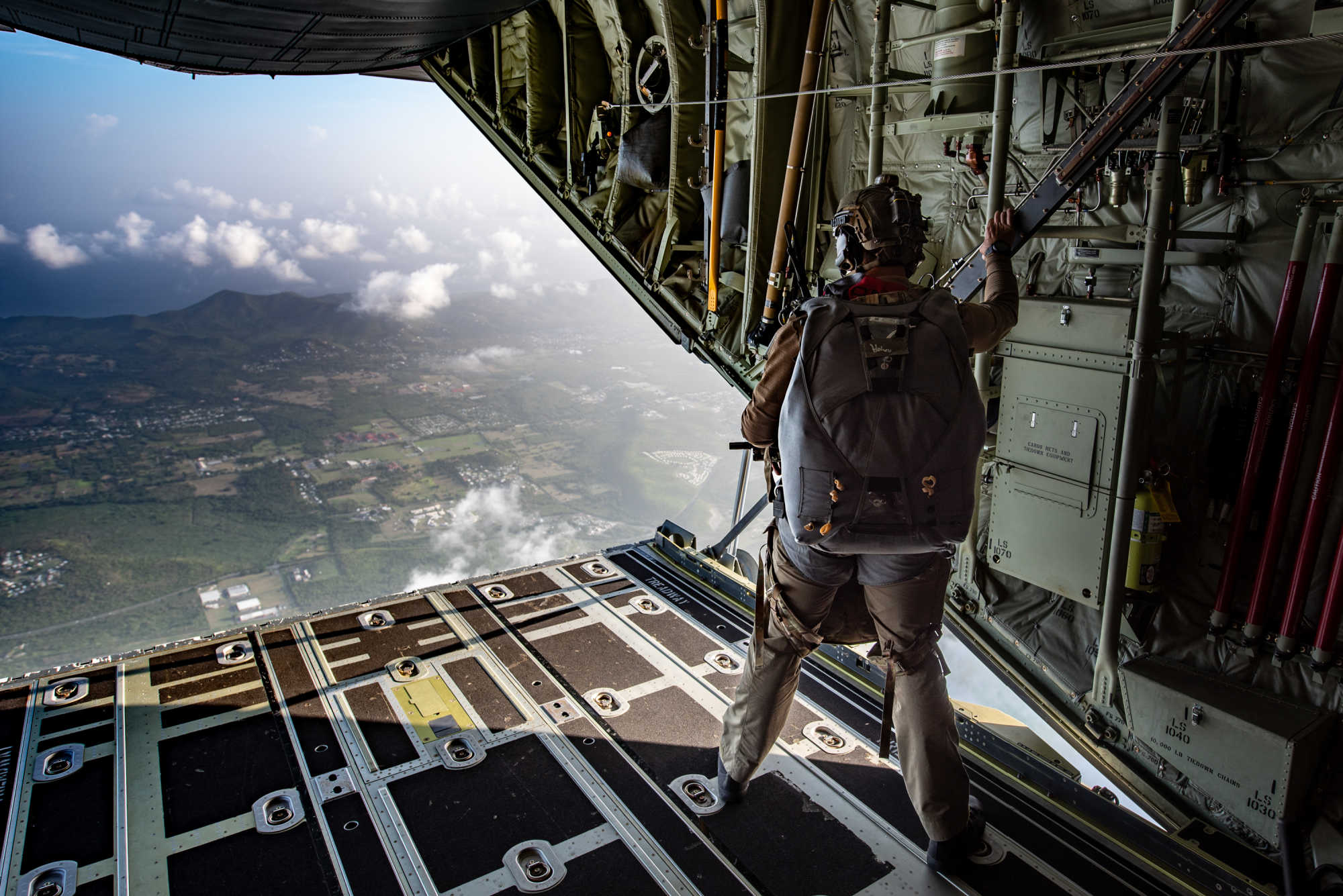 The exercise began August 26 when six Airmen parachuted three miles offshore into the Caribbean Sea with an inflatable boat from a C-130J Super Hercules. Eleven more combat controllers and pararescuemen jumped into Henry E. Rohlsen Airport from the same aircraft, quickly clearing runways, securing the perimeter, and implementing air traffic control to enable further landings.