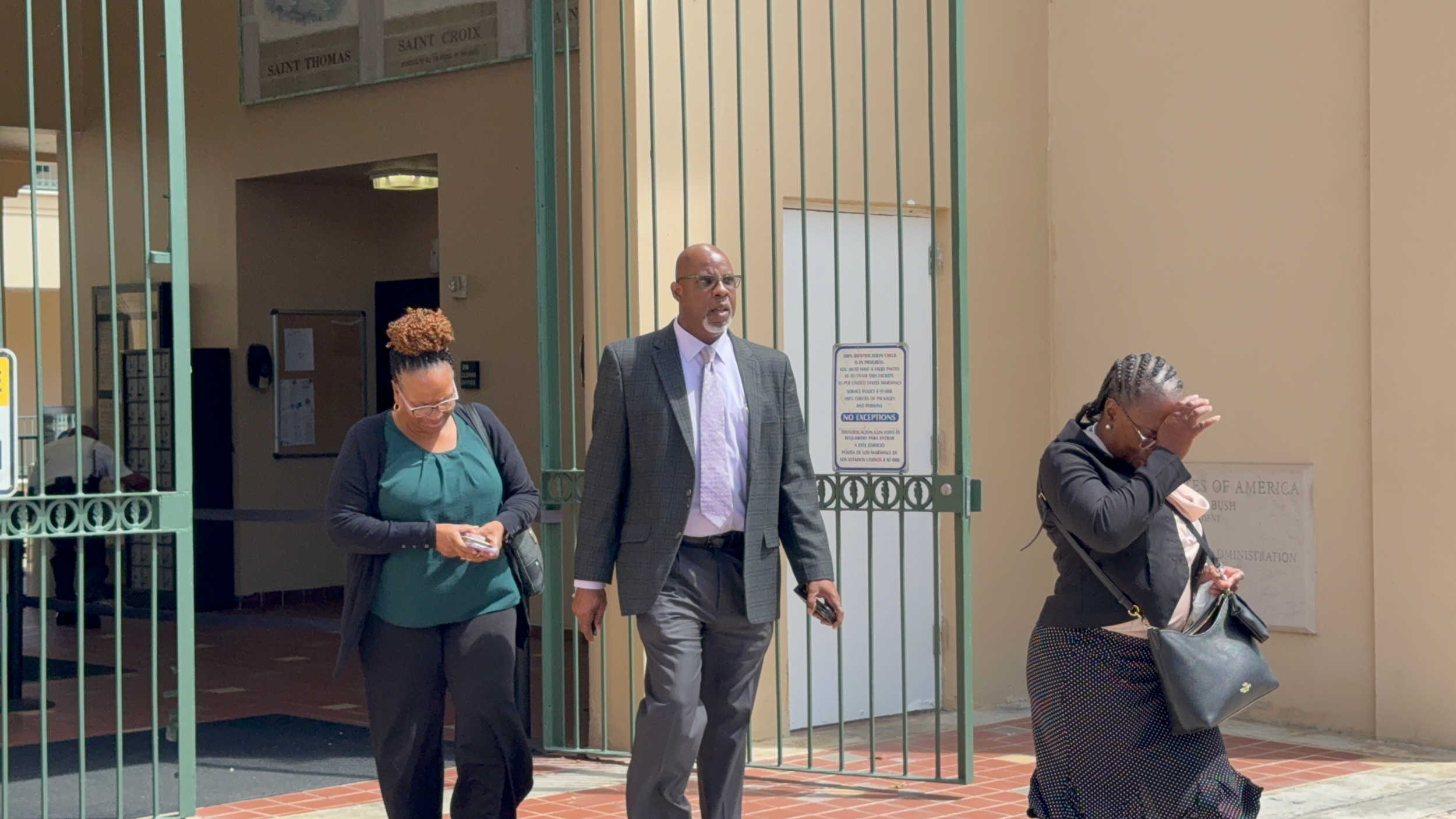 Darin Richardson, center, leaving the District Court on St. Croix during a lunch break on February 20, 2025. Photo Credit: ERNICE GILBERT, V.I. CONSORTIUM.