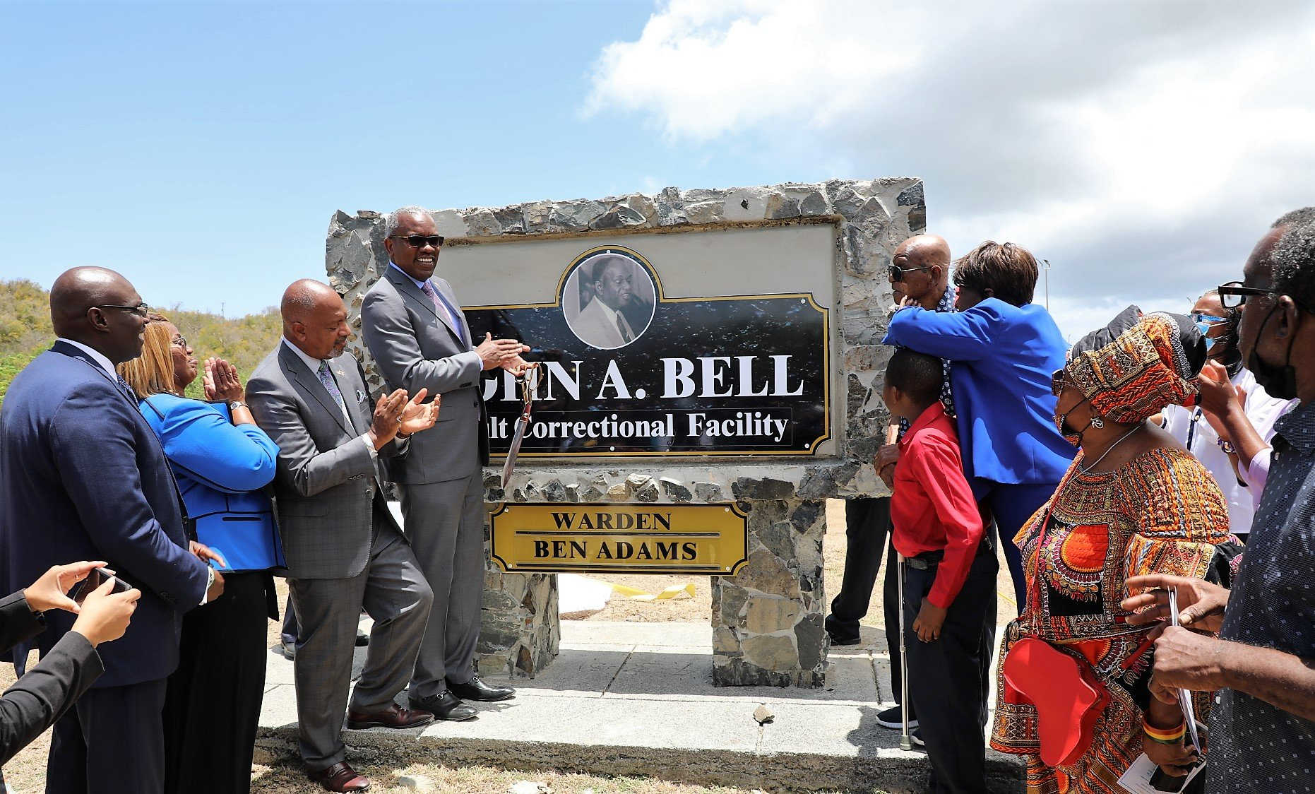 The resolution's rejection came the same day a ceremony for the official renaming of the prison facility on St. Croix was held. Present at the event were Bryan administration officials, among them the governor, Ms. Testamark, and Public Finance Authority official and former senator Alicia "Chucky" Hansen, who sponsored the measure during her tenure in the 30th Legislature renaming the facility from the Golden Grove Correctional Facility to the John A. Bell Adult Correctional Facility.