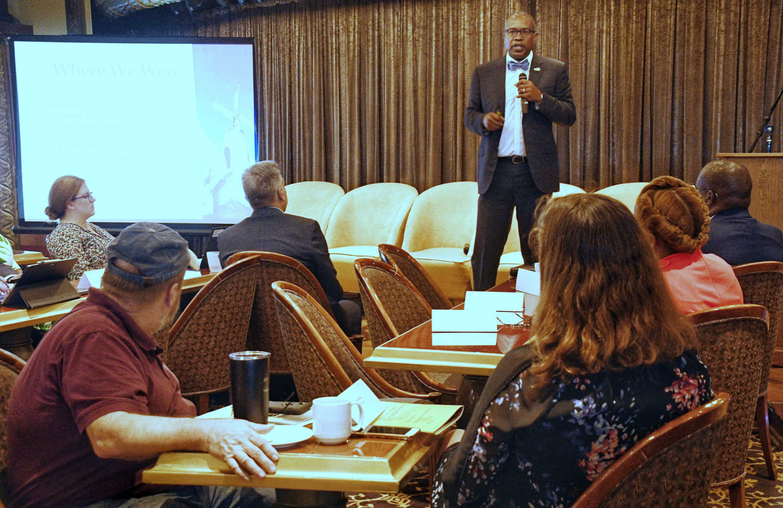 Governor Albert Bryan Jr. addresses attendees at the first Workforce Summit, which took place aboard the Carnival Conquest cruise ship in 2019. Last year’s summit was cancelled because of the COVID-19 pandemic. Photo Credit: GOV'T HOUSE