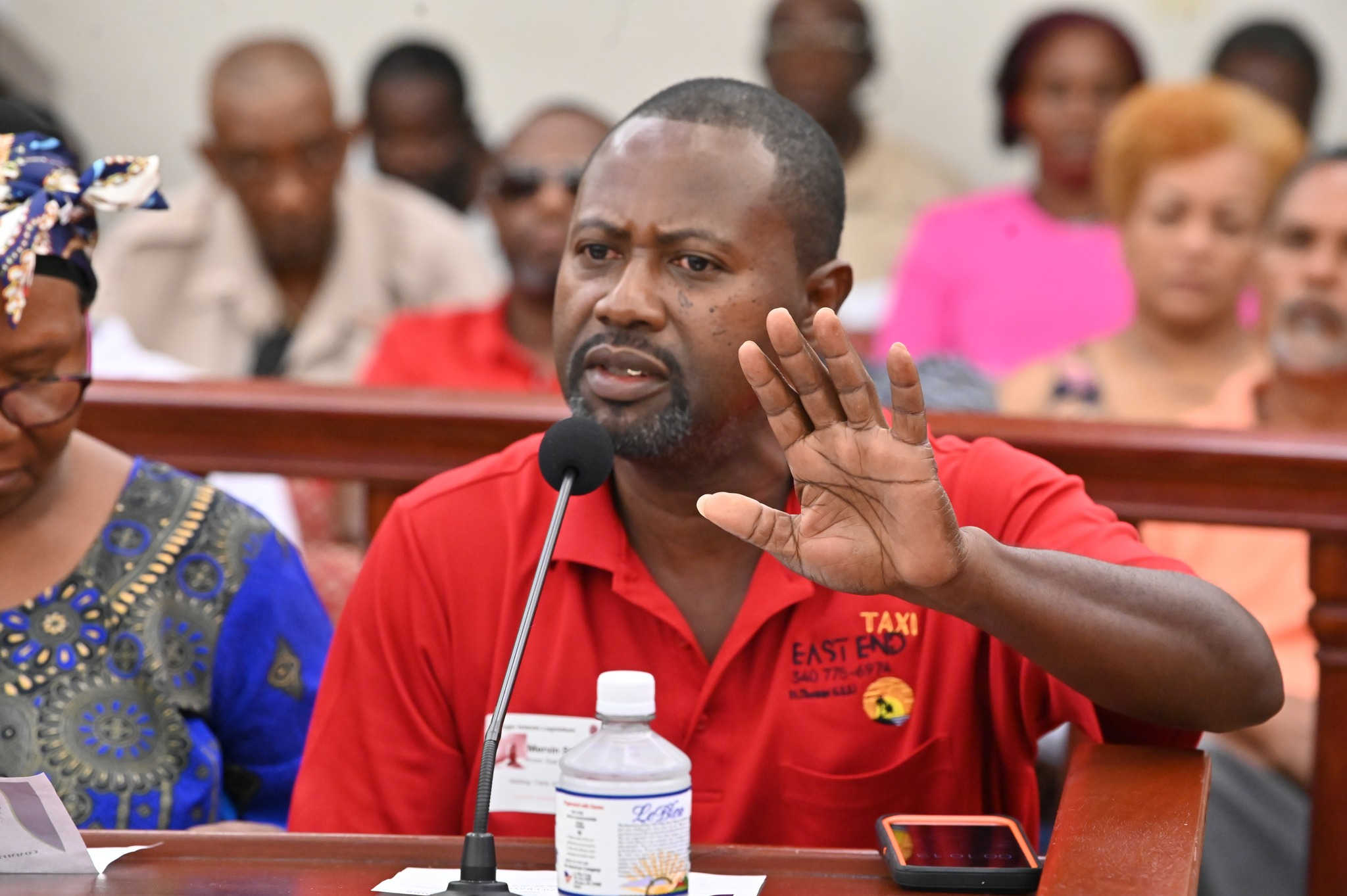 Mervin Smith, president, East End Taxi Association, testifying on Friday, Sept. 29, 2023. Photo Credit: PHOTO CREDIT: BARRY LEERDAM, LEGISLATURE OF THE VIRGIN ISLANDS.