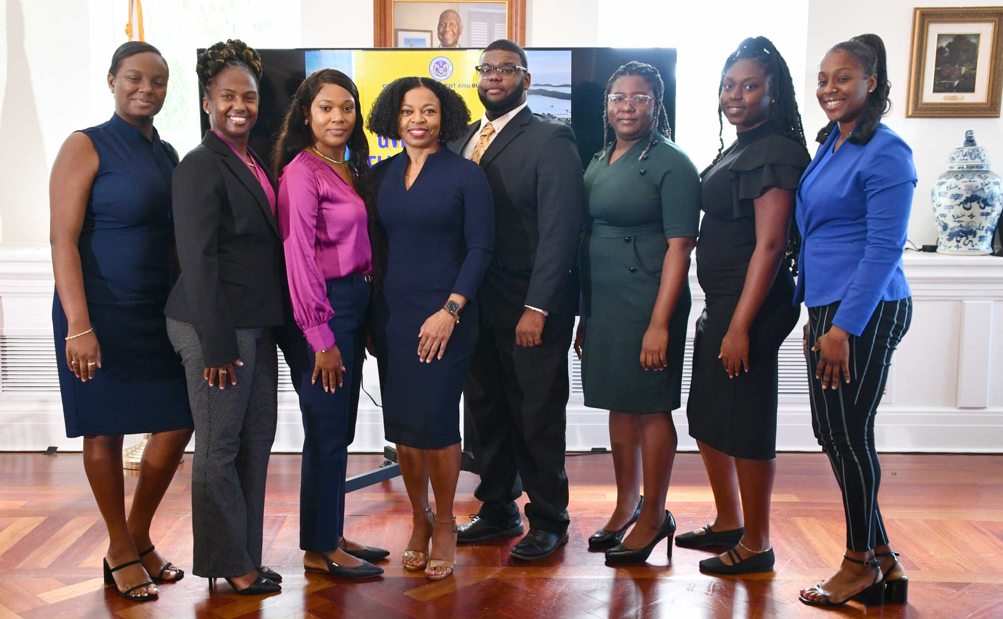 First cohort of GVI fellows pose for a picture with OMB Director Jenifer O'Neal. Photo Credit: GOV'T HOUSE