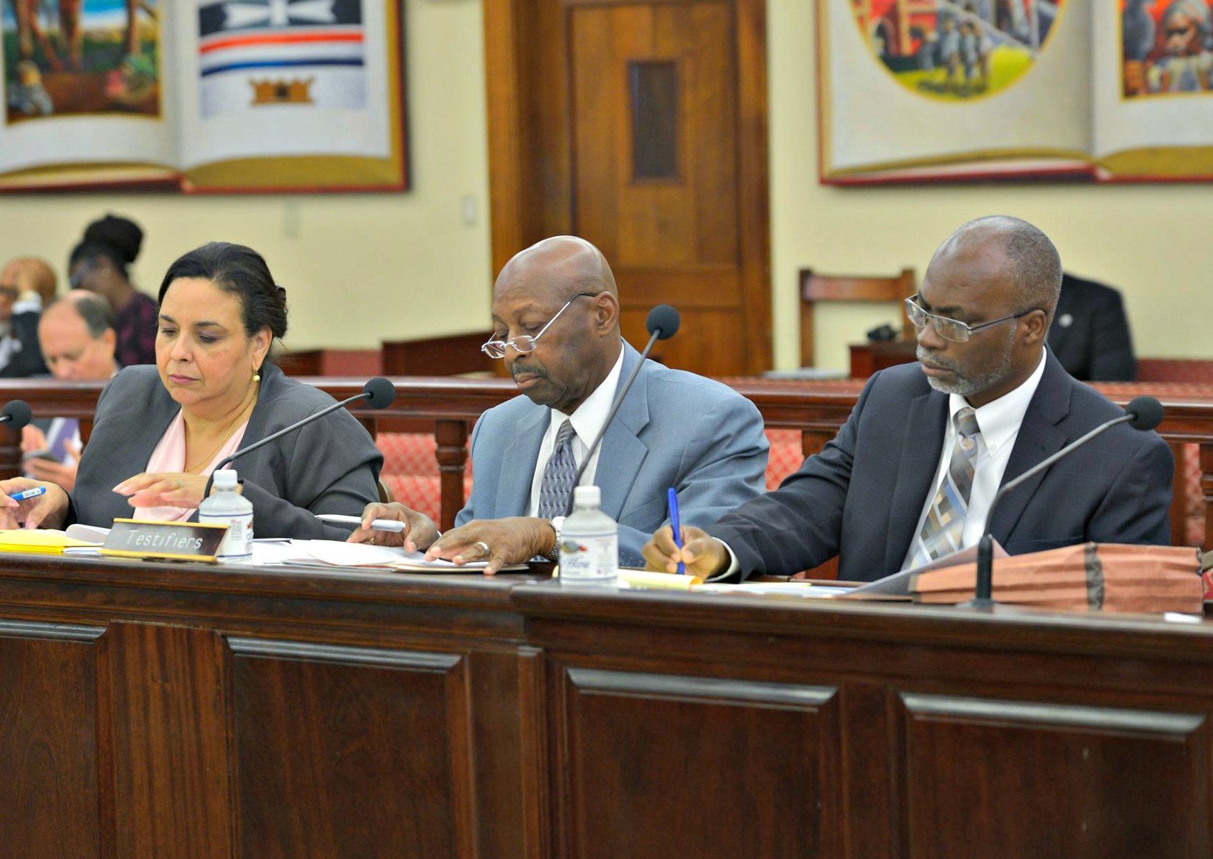 From left: Cathy Smith, GERS general counsel, Wilbur Callender, GERS chairman, and Pedro Williams, GERS board counsel Photo Credit: VI LEGISLATURE