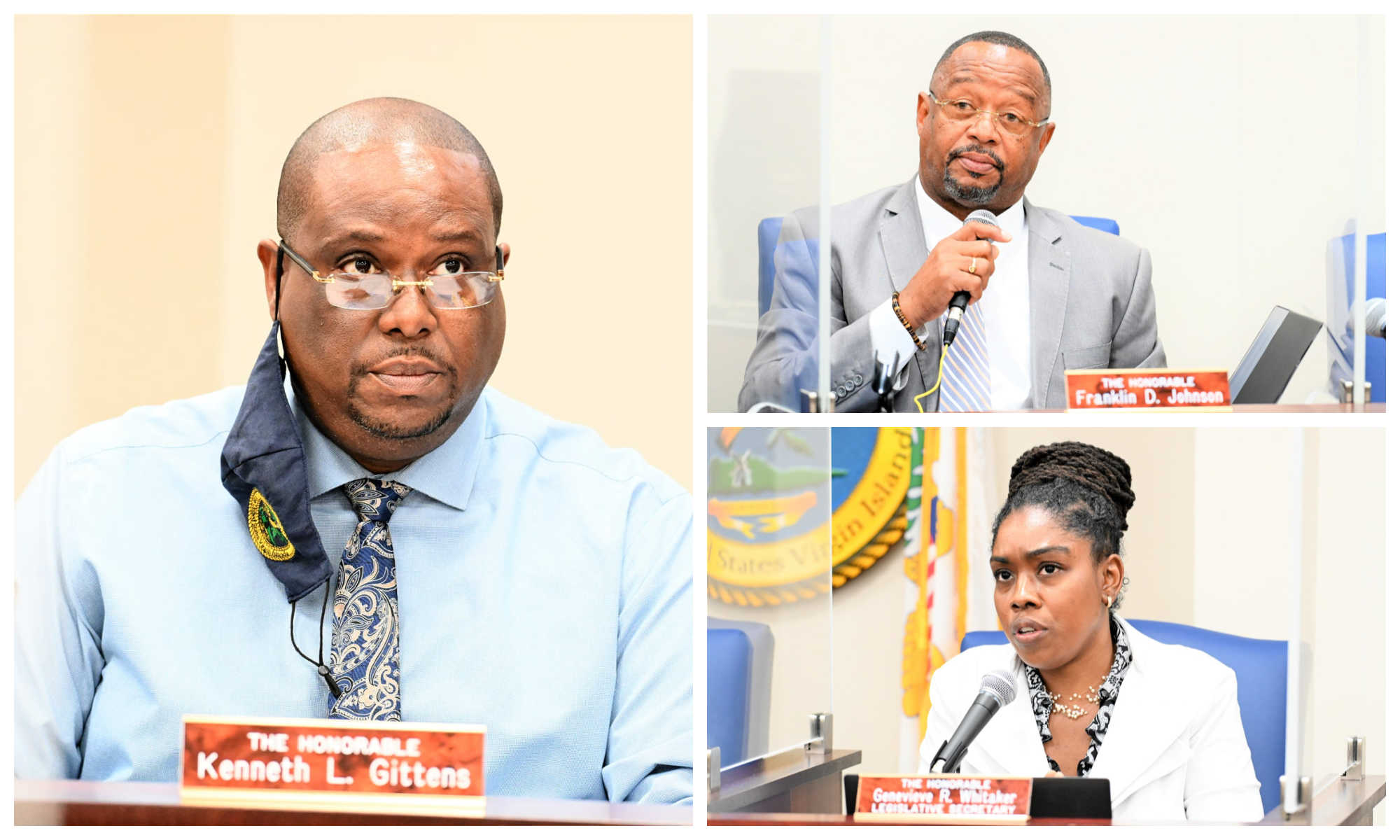 Senators Kenneth Gittens, left, Franklin Johnson, top right, and Genevieve Whitaker voted against Bill No. 34-0141 contending it's a duplication of current statute. Photo Credit: THE V.I. LEGISLATURE