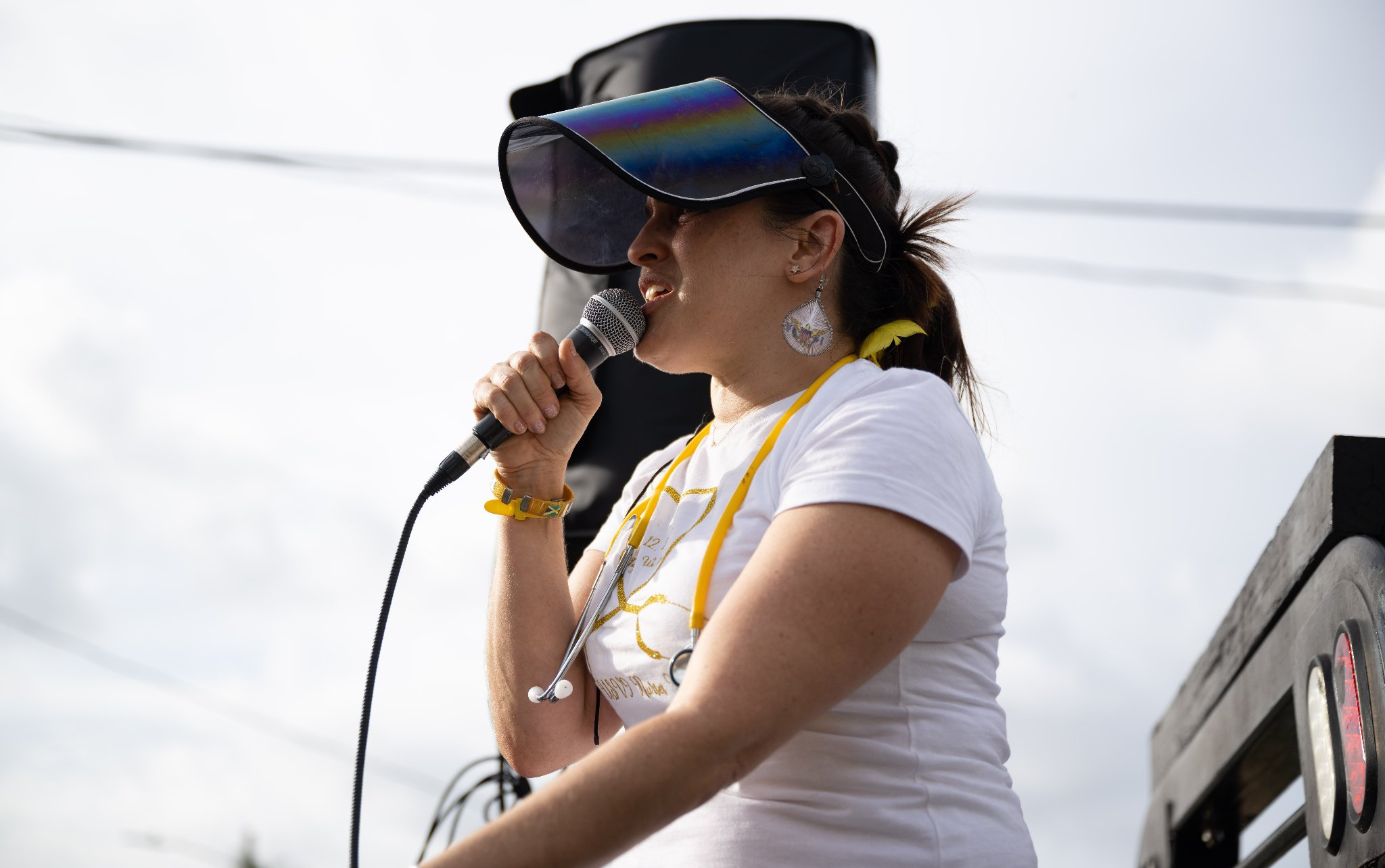 Registered Nurse Michelle Montoya speaks during a nurses protest in downtown Chritiansted on Thurs. May 12 2022. Photo Credit: REEMY-REEMZ PHOTOGRAPHY/VICONSORTIUM