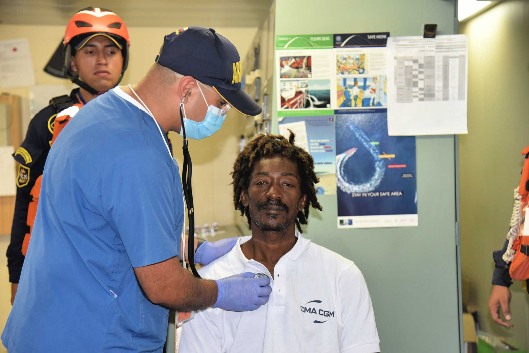 Elvis Francois was provided with a medical examination following his 24-day ordeal at sea. (Credit: The Colombian Navy)