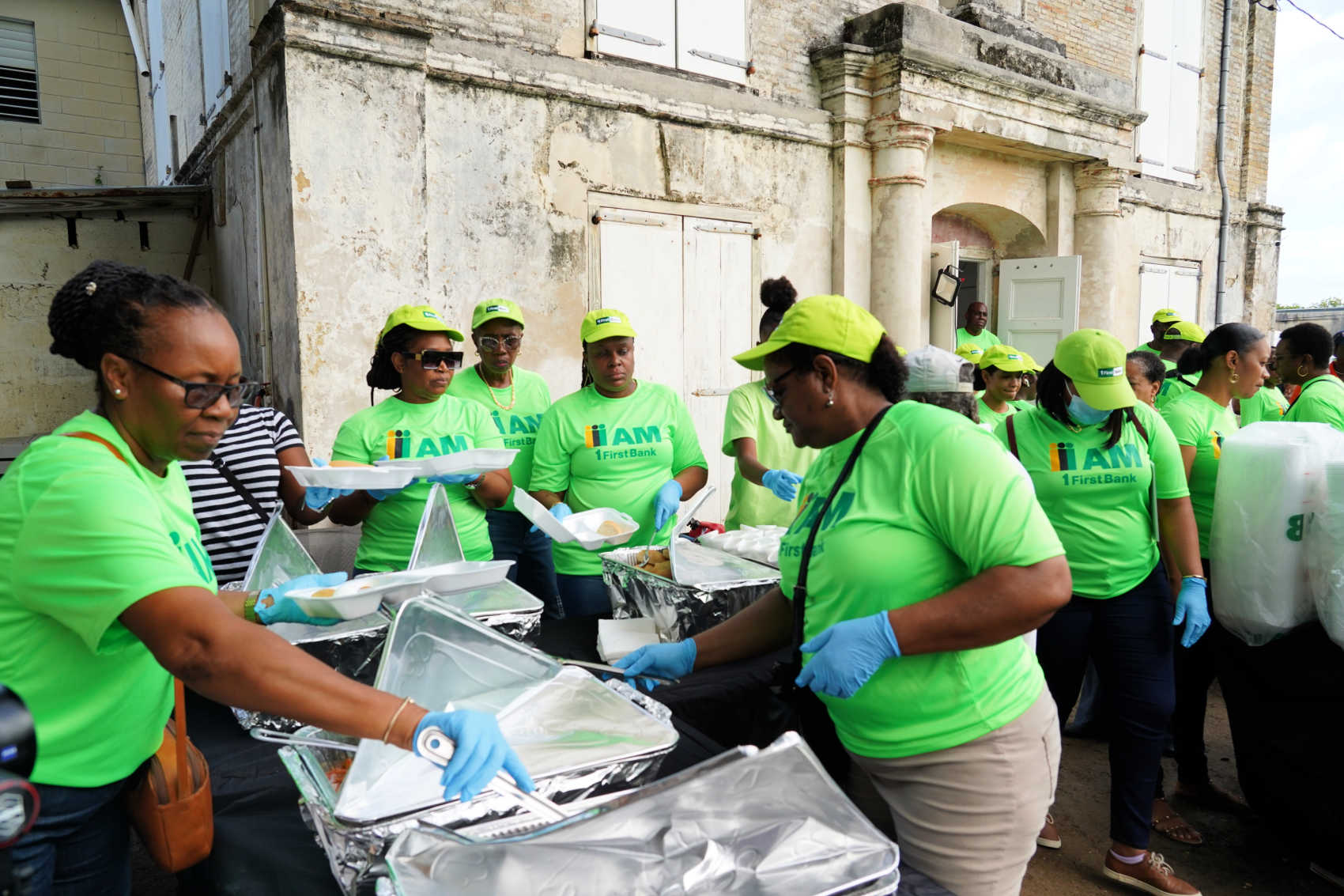 Firstbank VI employees and officials help serve meals to the homeless on St. Croix in partnership with the Collective Collaboration on Sat. Oct. 1, 2022, as part of the bank's 74th anniversary celebration. Photo Credit: ERNICE GILBERT/ V.I. CONSORTIUM