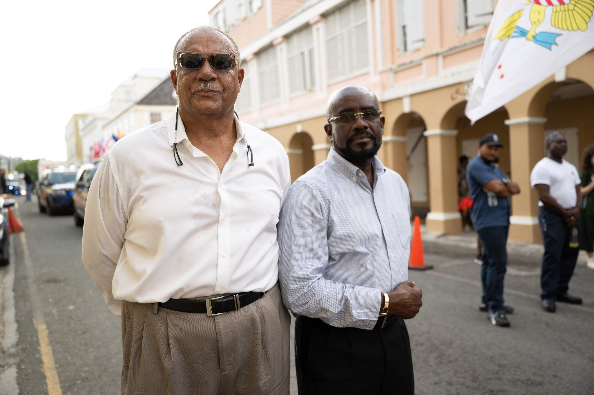 From left to right: Kent Bernier and Oakland Benta participate in a nurses protest in downtown Christiansted on Thurs. May 12, 2022. Photo Credit: REEMY-REEMZ PHOTOGRAPHY/VICONSORTIUM