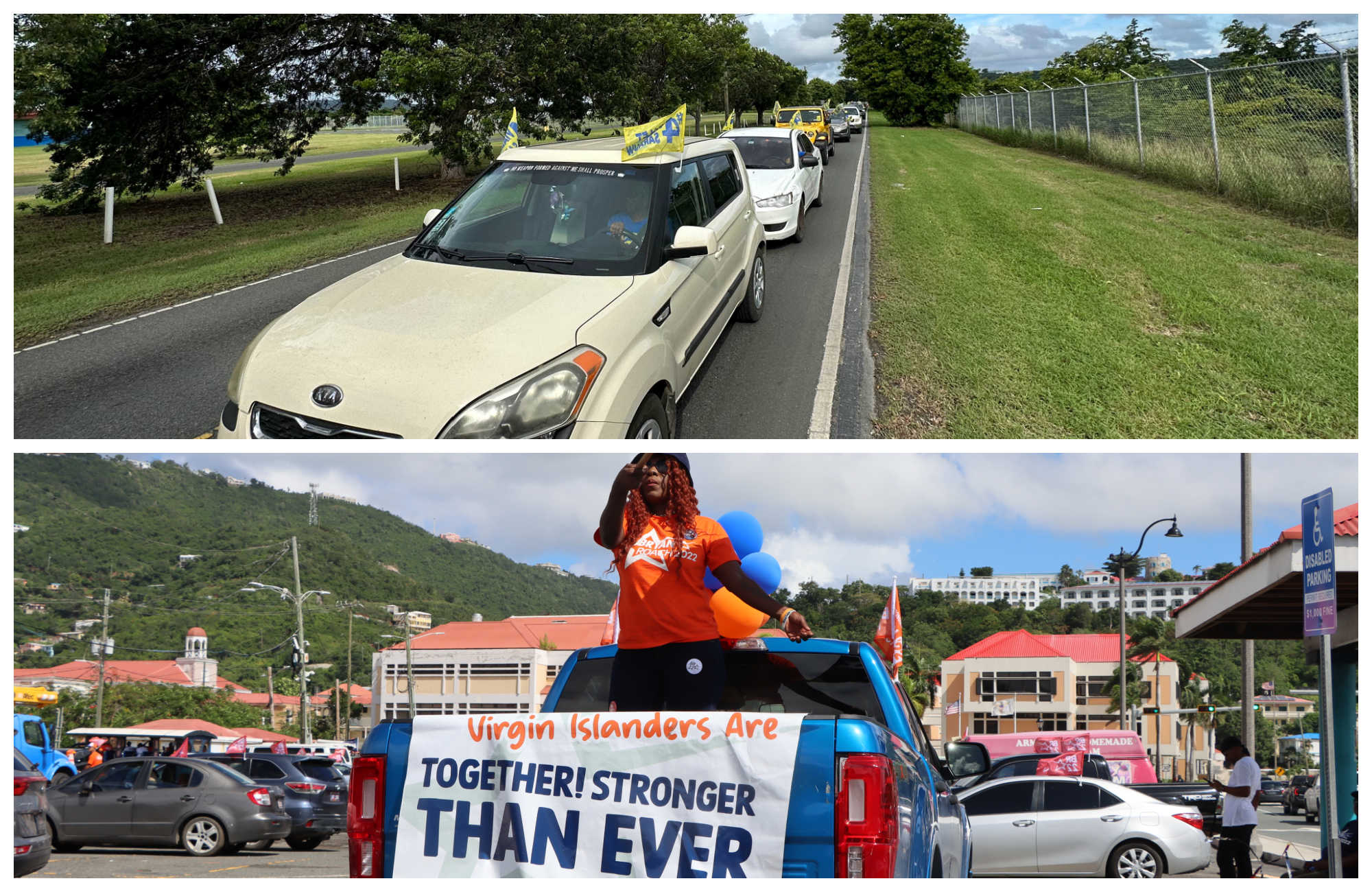 Upper photo shows supporters of the Vialet-Sarauw team on Sunday, Nov. 6, 2022 on St. Croix, and the photo below shows supporters of the Bryan-Roach team in St. Thomas on Nov. 6. 2022. Photo Credit: V.I. CONSORTIUM