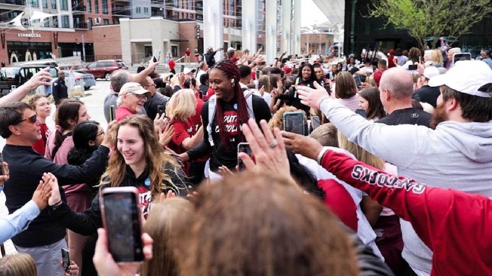 Aliyah Boston and teammates are greeted by fans. Photo Credit: GAMECOCKS