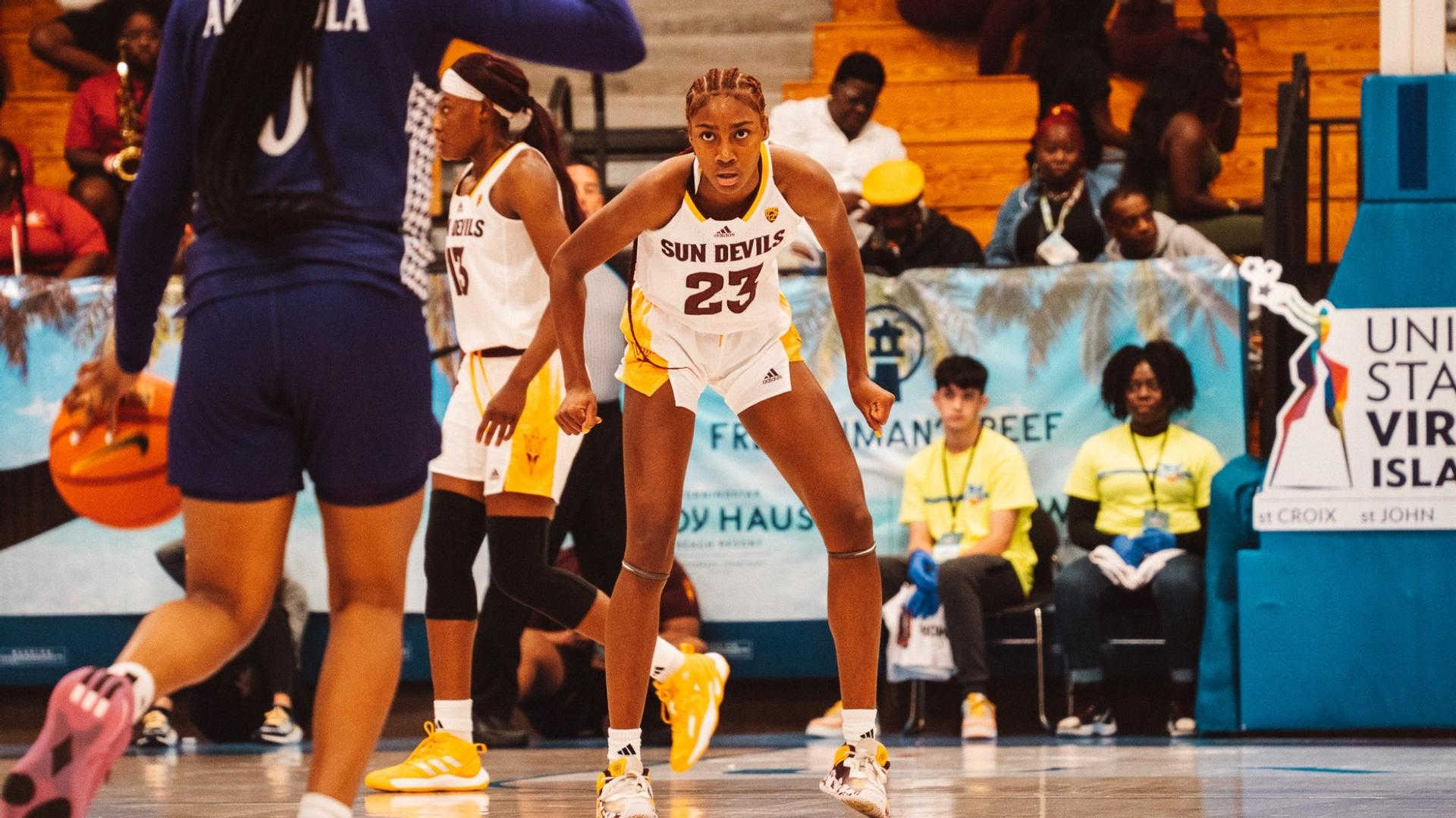 In a thrilling conclusion to their Paradise Jam campaign, the Sun Devil women's basketball team claimed a hard-fought 77-69 win against High Point on Saturday at the UVI Sports & Fitness Center in St. Thomas.