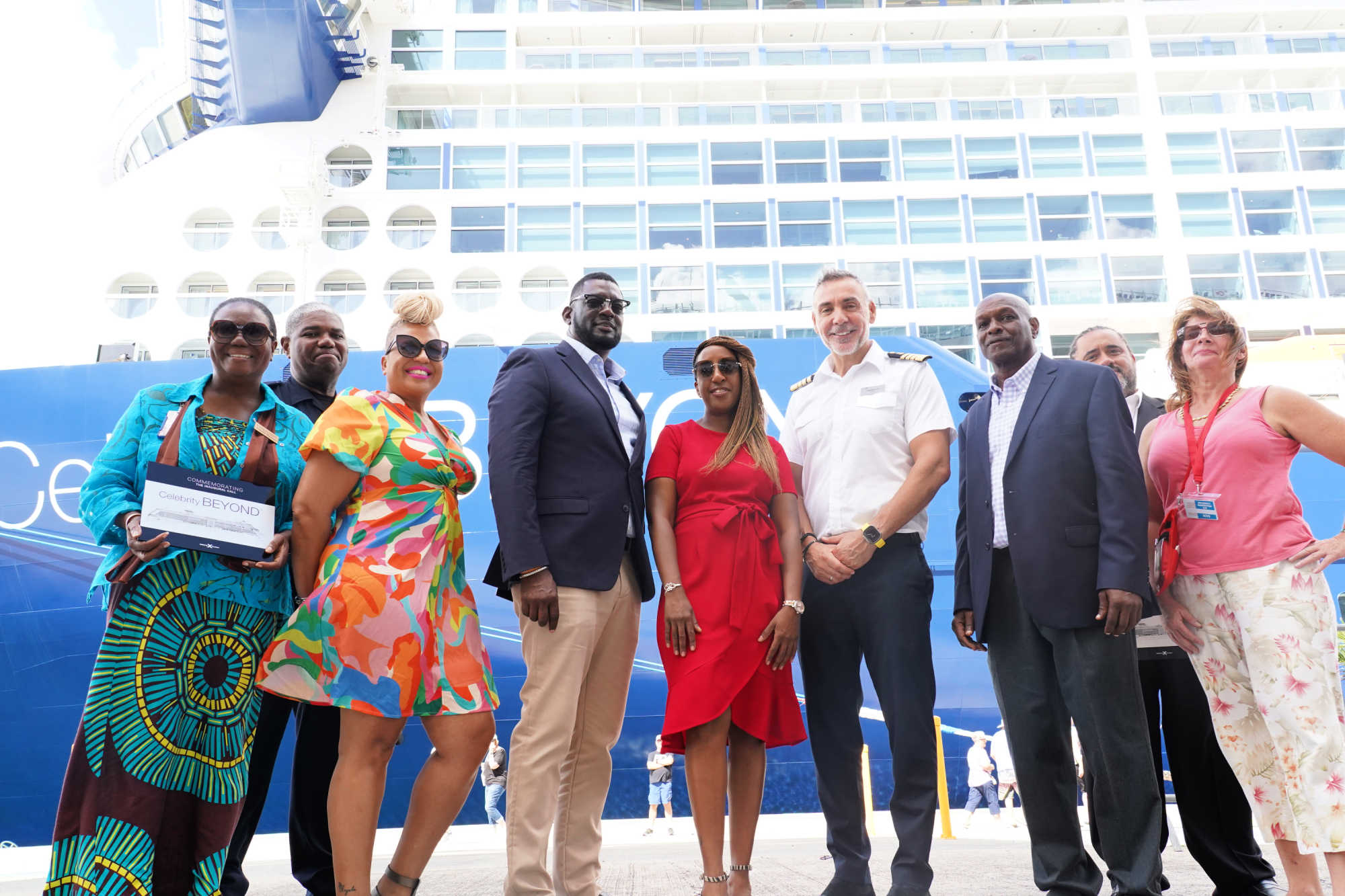 Celebrity Beyond Captain Dimitrios Kafetis was showered with welcoming gifts by VIPA, Dept. of Tourism and Gov't House officials, among them Alani Henneman-Todman, assistant commissioner of marketing at D.O.T., Kevin Rodriquez, Bryan Administration deputy chief of staff, and Mr. Dowe. Private sector stakeholders were also present.