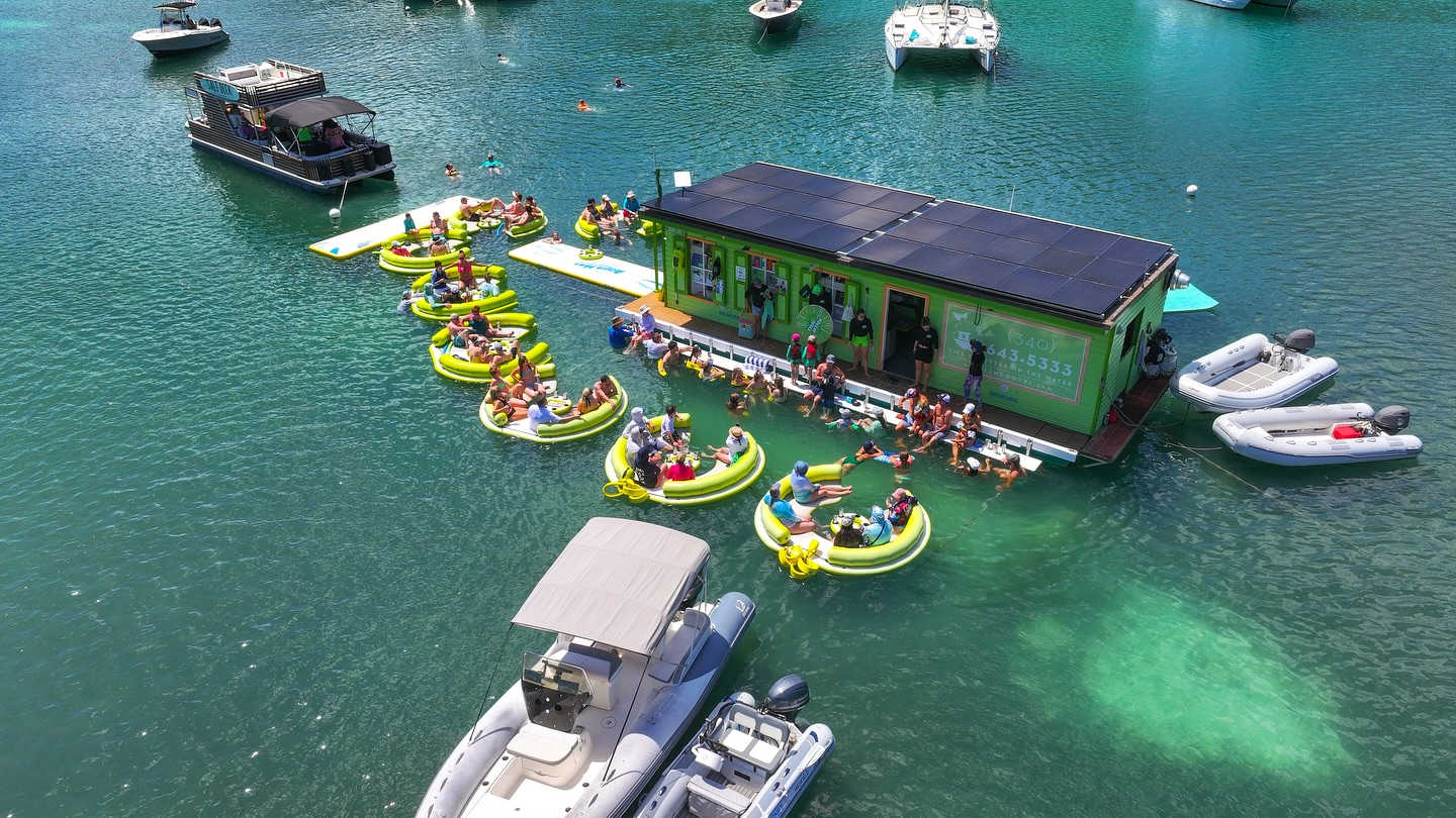 Lime Out’s floating taco restaurant in St. John, an internationally recognized destination blending marine tourism with eco-friendly dining in the Virgin Islands.