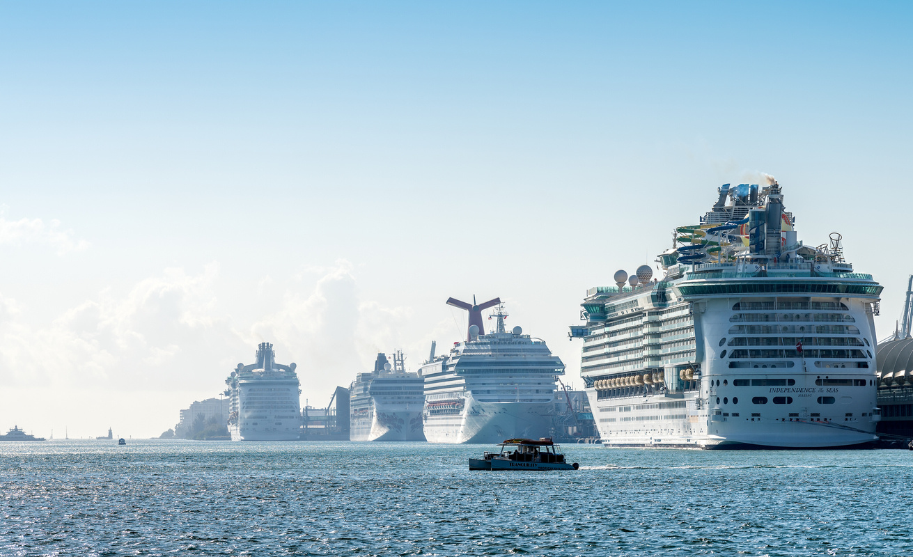 Miami, FL, March 25, 2021: Cruise ships at Port of Miami, one of the busiest ports in the United States. Photo Credit: GETTY IMAGES