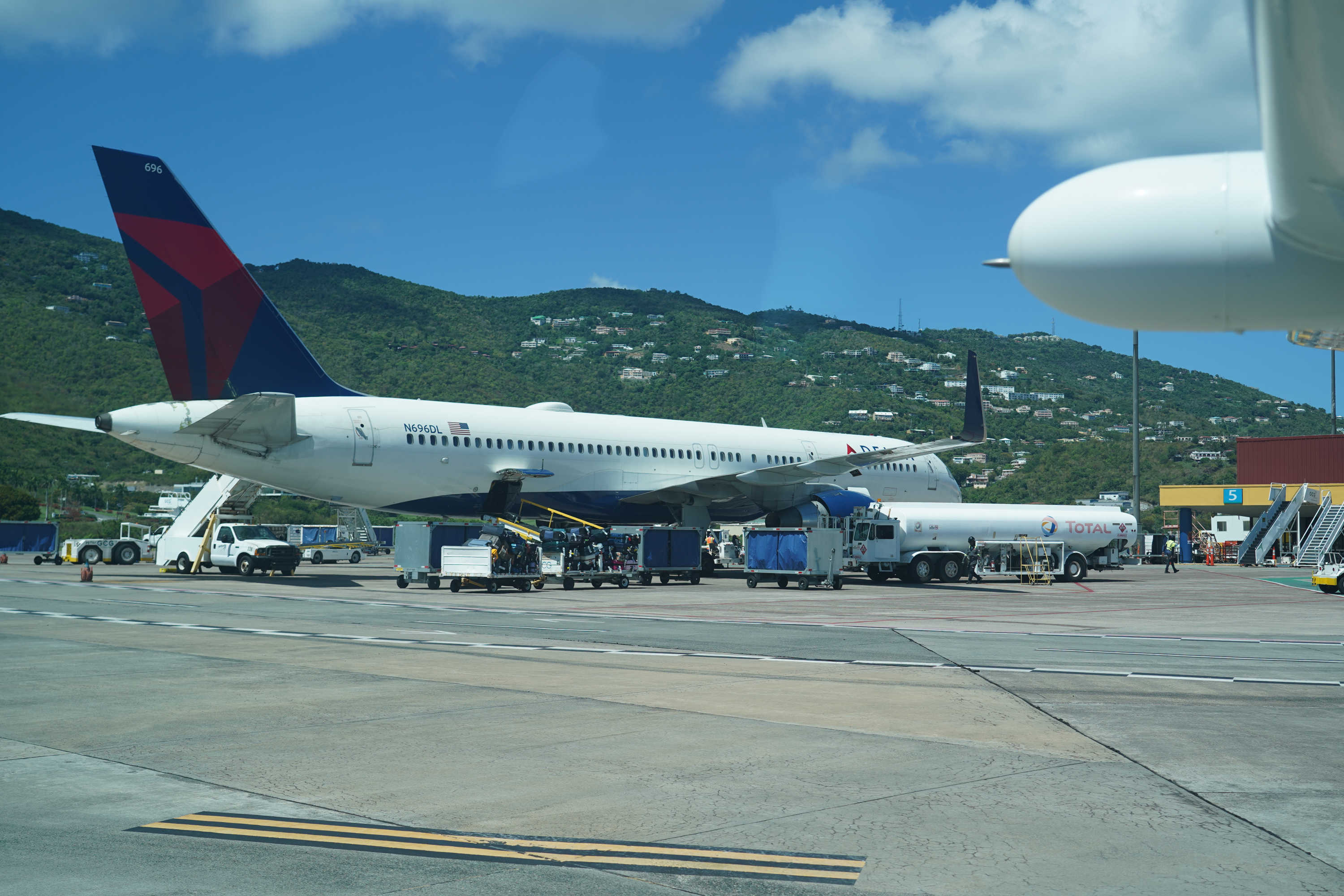 Delta Airlines at the Cyril E. King Airport in St. Thomas in April 2025. Photo Credit: ERNICE GILBERT, V.I. CONSORTIUM.