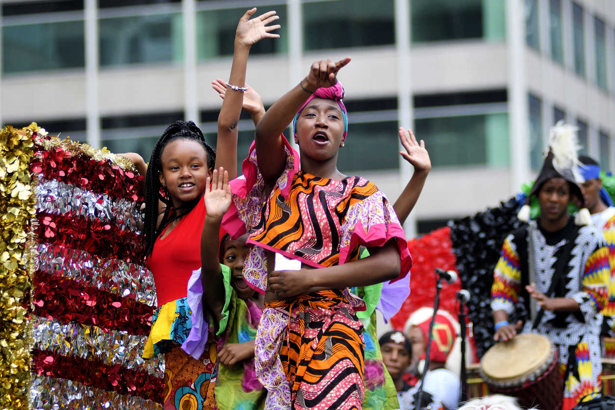 June 23, 2018; Children on a float wave to the crowd during the annual Juneteenth parade in Center City Philadelphia, PA, Photo Credit: GETTY IMAGES