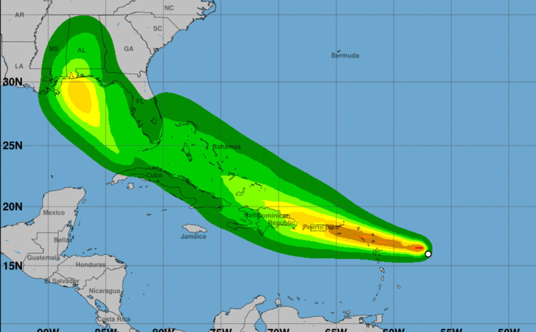 On the forecast track, the center of Grace is expected to move over the Leeward Islands tonight, over the Virgin Islands and Puerto Rico on Sunday, over the Dominican Republic on Monday, and then between the southeastern Bahamas and Cuba on Tuesday.